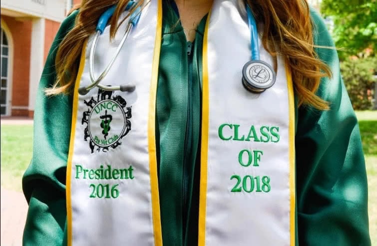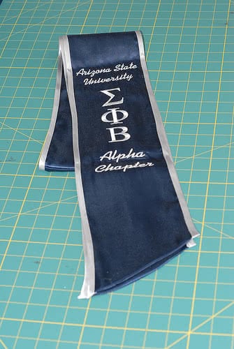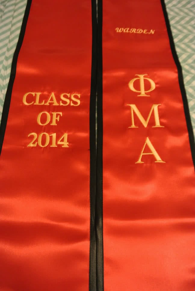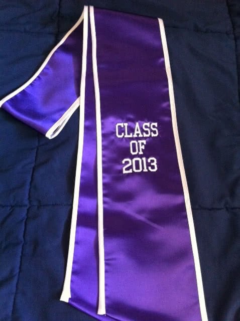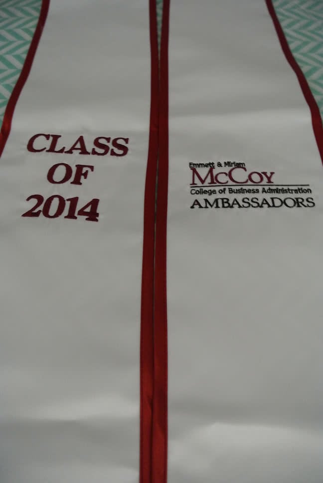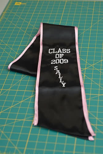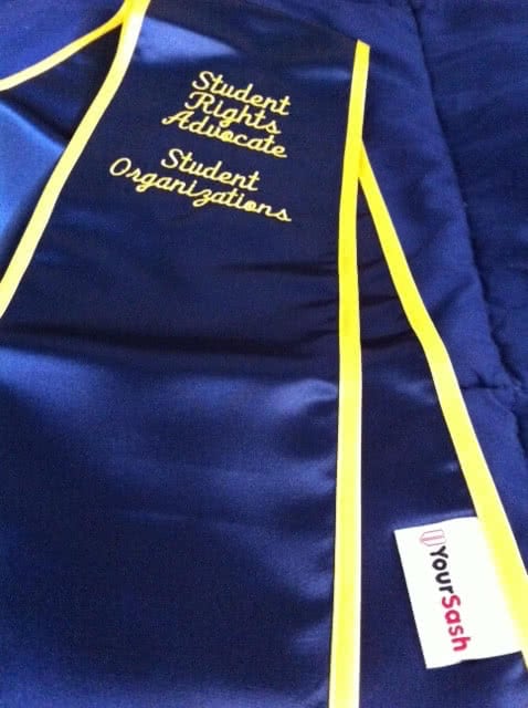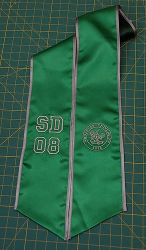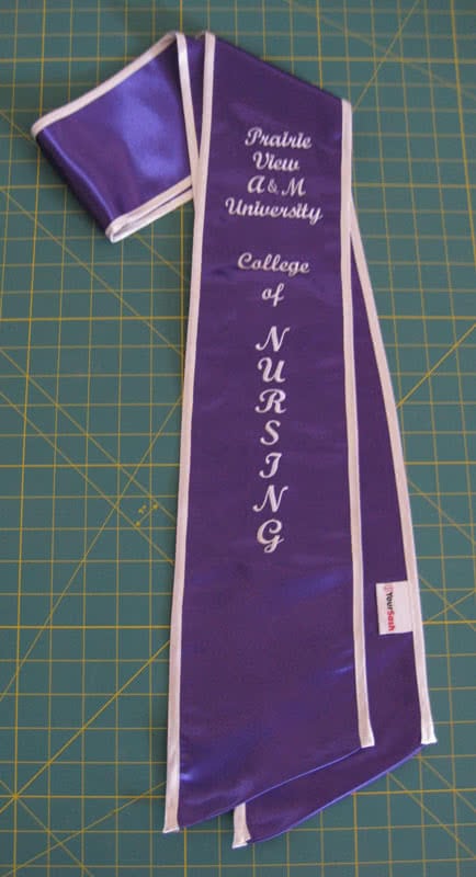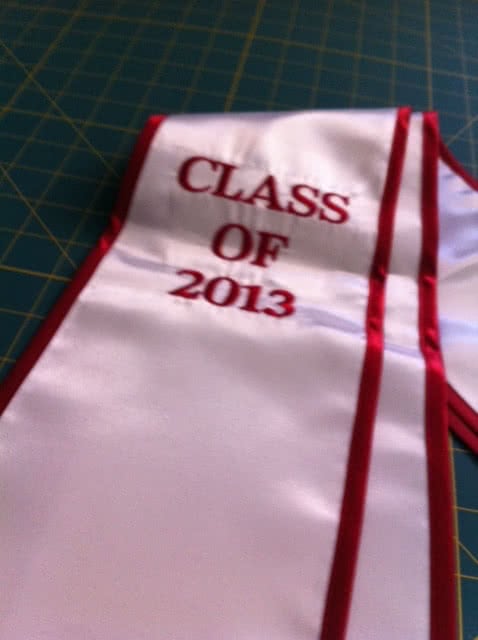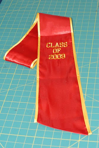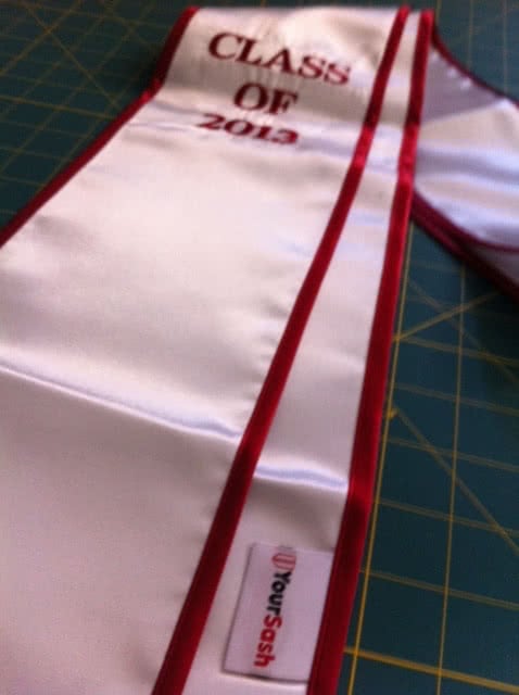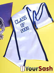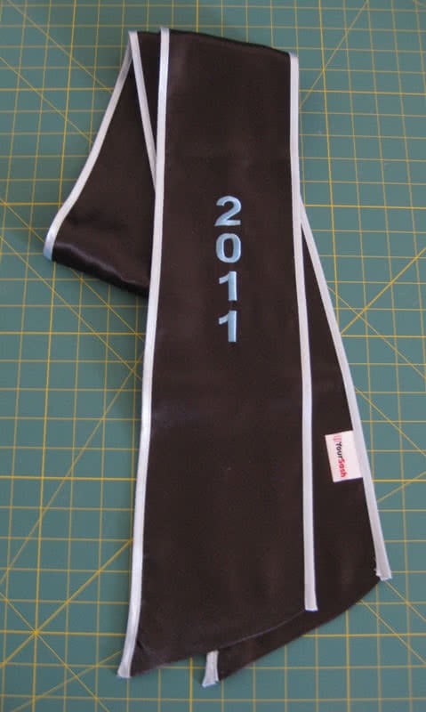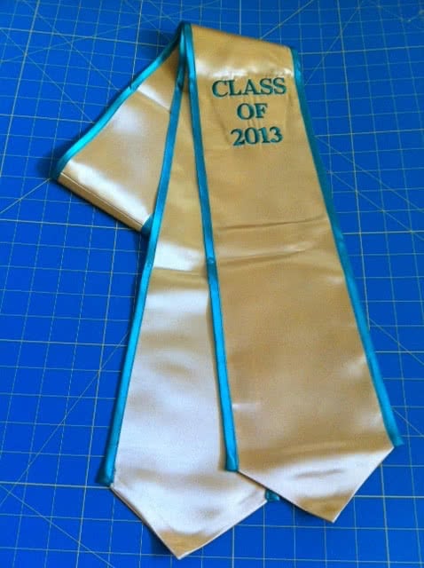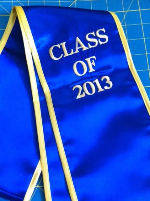 We're adding more pictures to the photo gallery! If you are a past customer, feel free to send us some photos of you wearing your graduation sash at commencement! Our graduation stoles and sashes are all made from bridal-quality satin fabric and measure approximately 70" in total length and 4.75" in width.