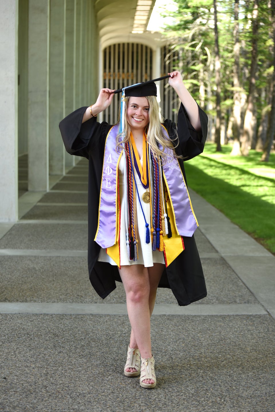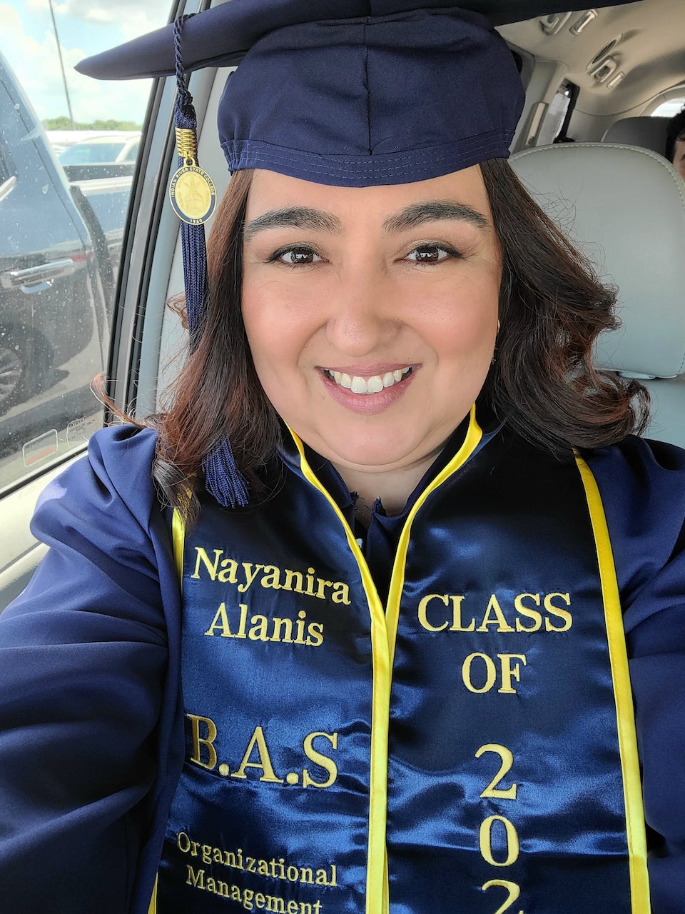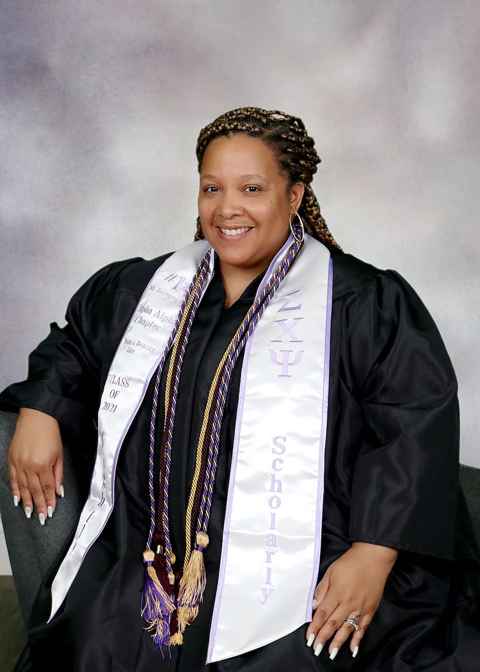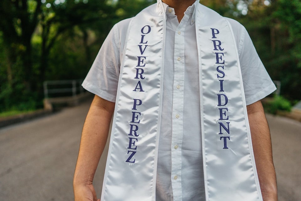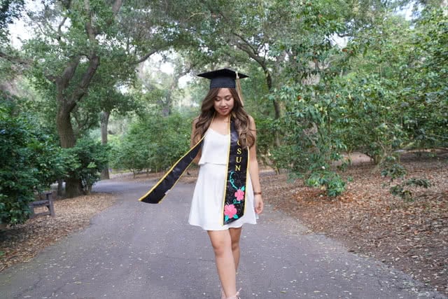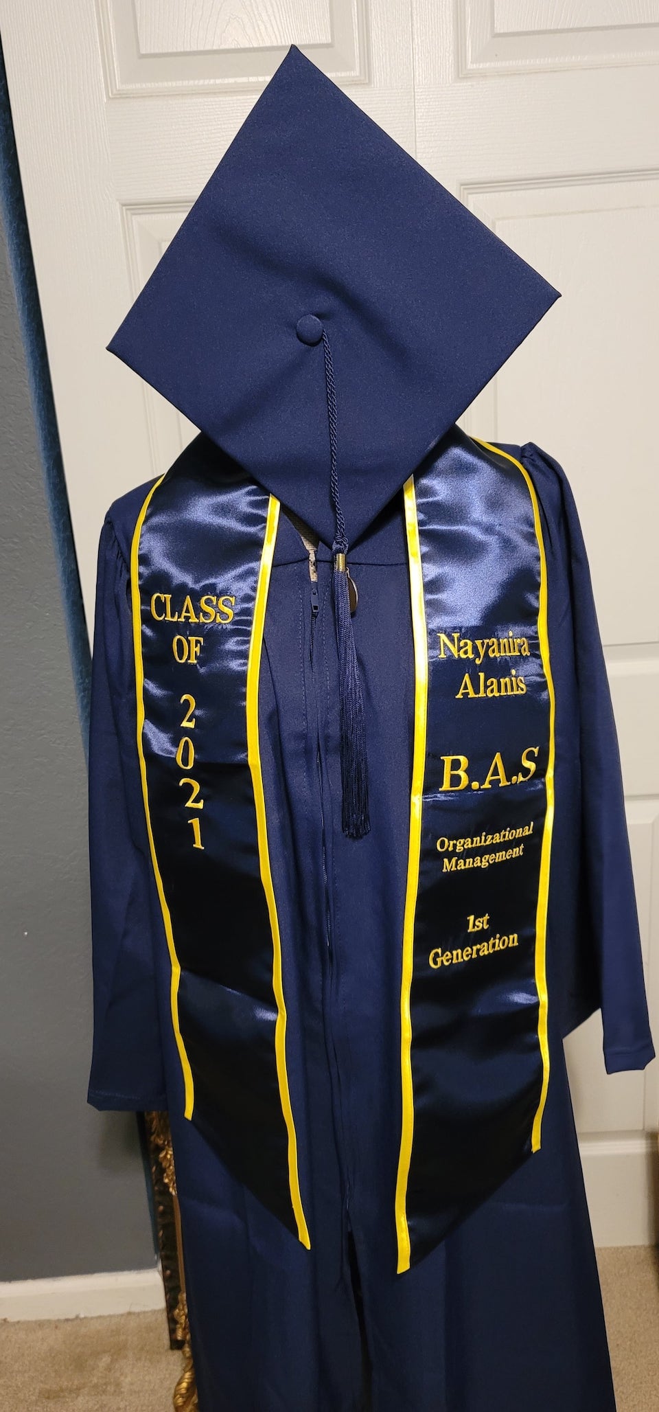 We're adding more pictures to the photo gallery! If you are a past customer, feel free to send us some photos of you wearing your graduation sash at commencement! Our graduation stoles and sashes are all made from bridal-quality satin fabric and measure approximately 70" in total length and 4.75" in width.